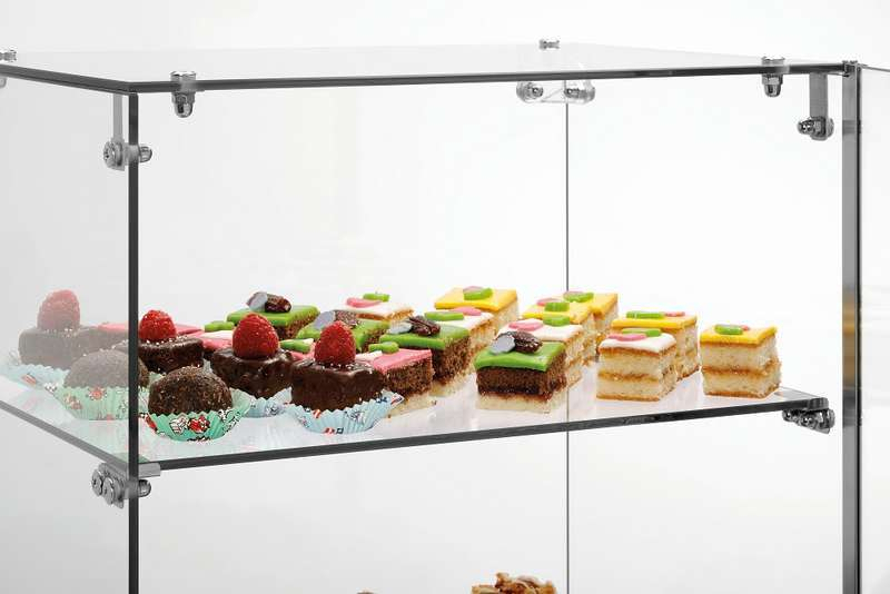 Die platzsparende Buffetvitrine bietet Auslagefläche auf 3 Ebenen. So können temperaturunempfindliche Speisen wie z. B. Gebäck, trockener Kuchen, Pralinen, belegte Brötchen oder Sandwiches ansprechend präsentiert werden.