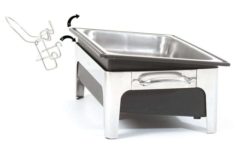 Ideal zur platzsparenden Präsentation von warmen Speisen z.B. für Buffet, Catering oder Party-Service.