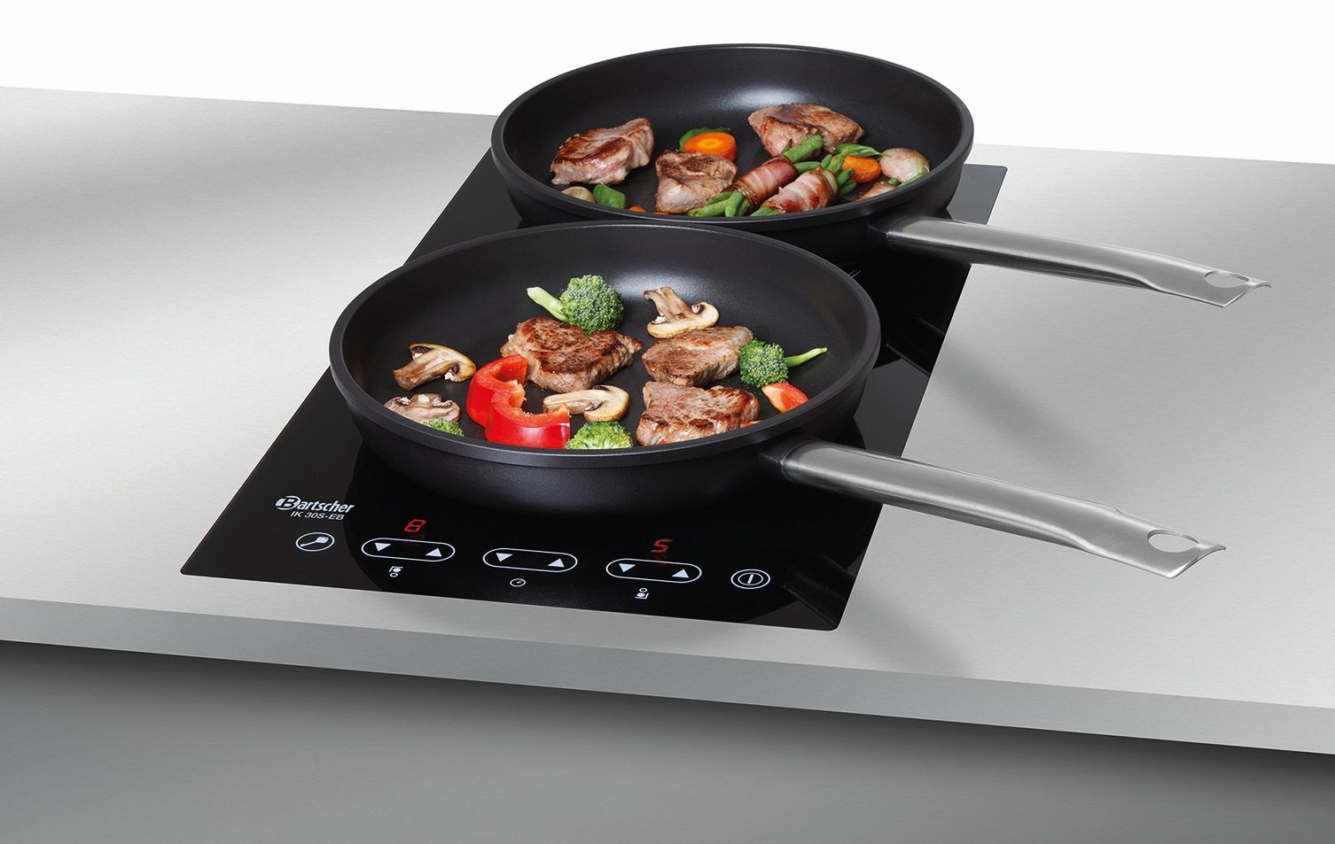 Bartscher / Induktionskocher IK IK 30S-EB | Einbaufähiges, platzsparendes Induktionskochfeld mit hintereinander liegenden Kochstellen und einer durchgehenden Schott-Ceran-Oberfläche.