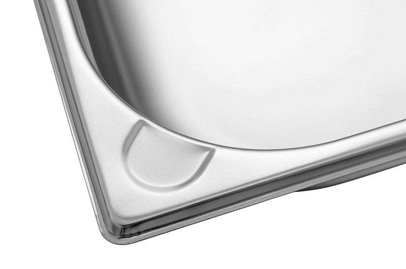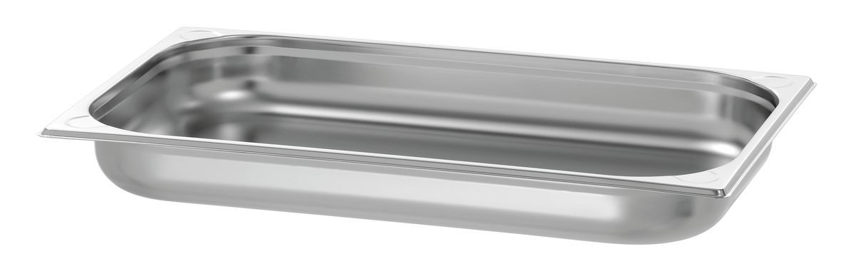 GN-Behälter nach EN 631 aus rostfreiem Chromnickelstahl mit seidenmatter Oberfläche.