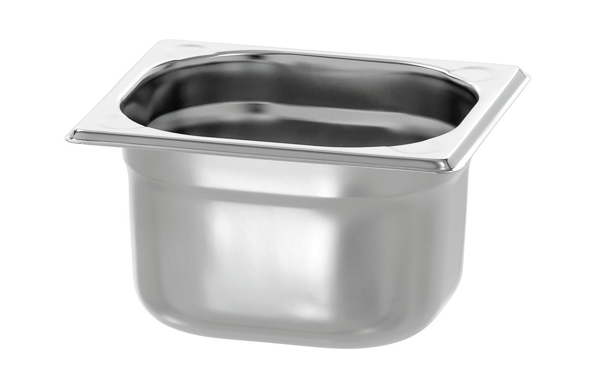 GN-Behälter nach EN 631 aus rostfreiem Chromnickelstahl mit seidenmatter Oberfläche.