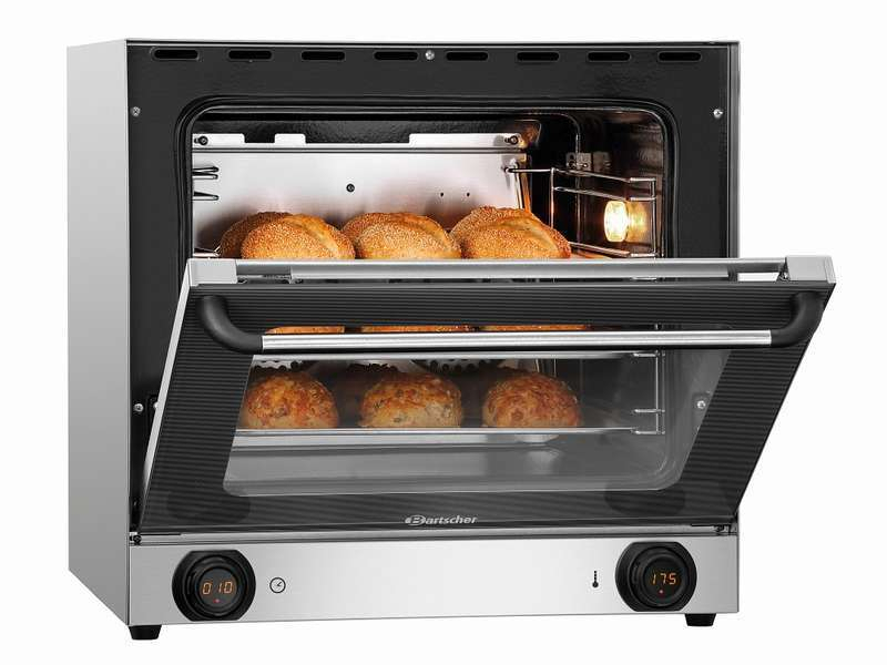 | Knebel mit Digital-Anzeige für Temperatur und Zeit mögliche Pausierung des Garprozesses über Temperaturregler Doppeltürverglasung abgerundete Backkammer Auflageschienen herausnehmbar Signalton nach Ablauf der Zeit LED-Anzeige Innenbeleuchtung | |||||||