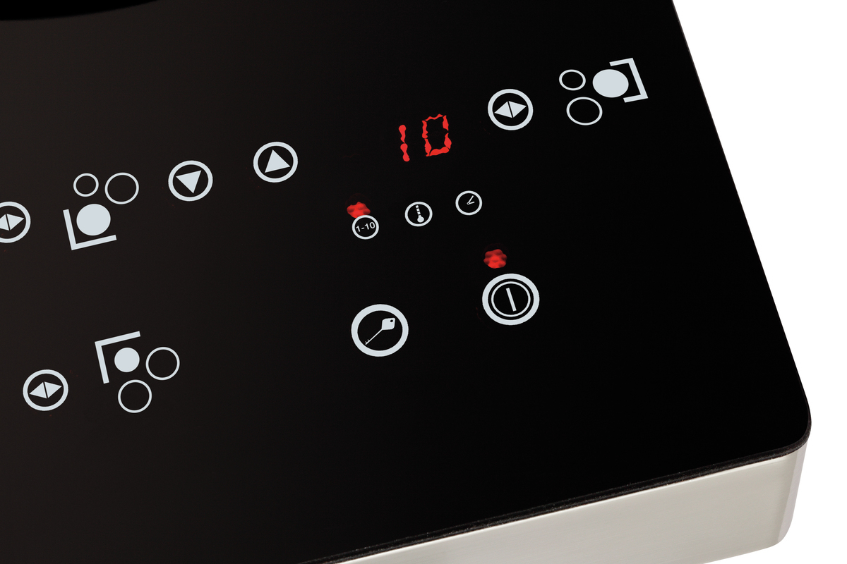Induktionskocher mit 3 Kochstellen für den individuellen Gebrauch. Je nach Art der Speisenzubereitung können 3400 Watt entsprechend auf 3 oder auf 2 Kochstellen verteilt werden.