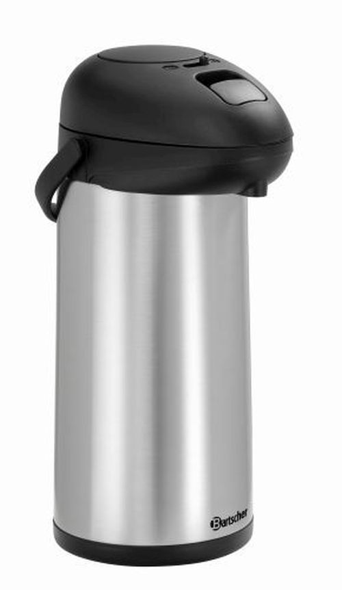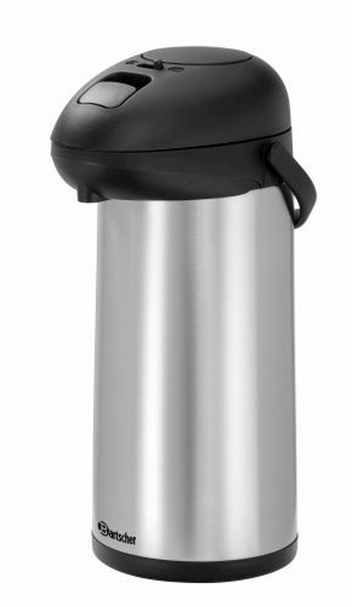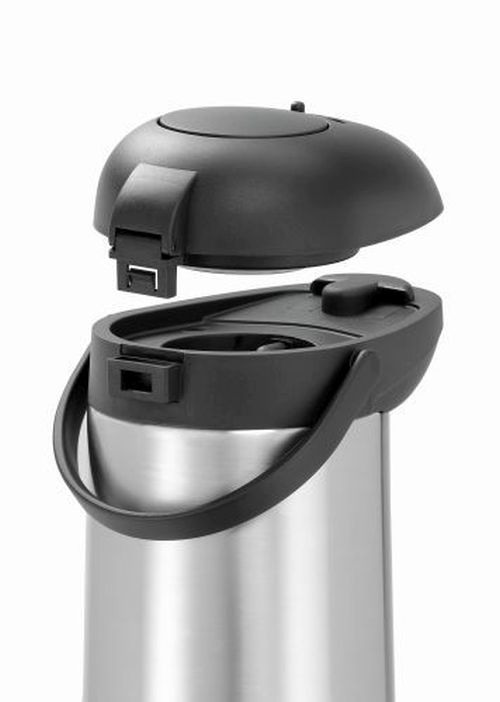 | Boden mit integriertem Ring für eine 360°-Drehung der Kanne Verriegelungssystem Deckel mit Ausgießmechanik Pumpkopf komplett abnehmbar Einfache Reinigung Pumpsystem doppelwandig |