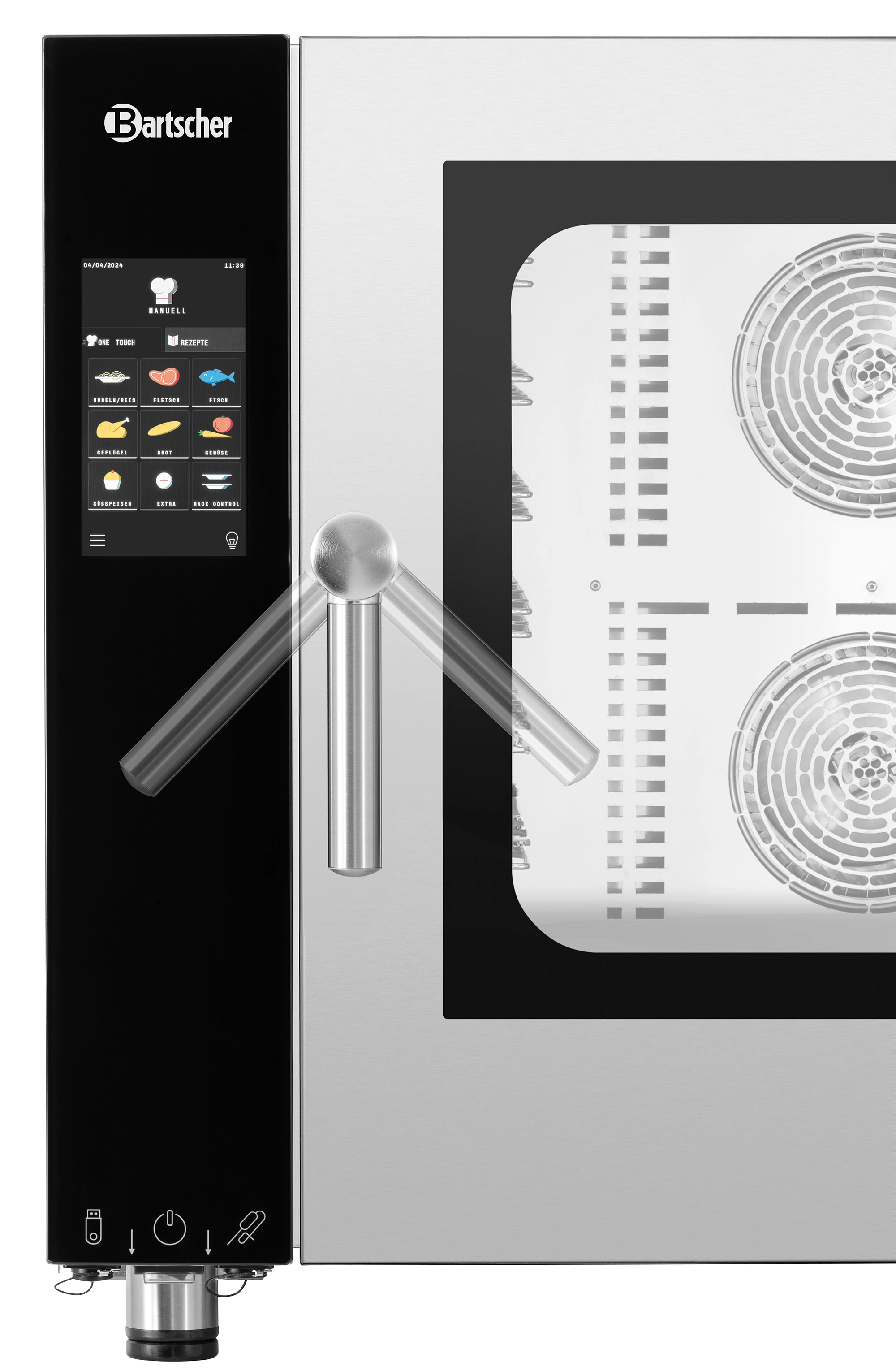 Das durchdachte Design mit seitlich angebrachtem Kerntemperaturfühler-Anschluss und einem übersichtlichen Bedienfeld sorgt für eine komfortable Nutzung und passt sich optimal an die Anforderungen professioneller Küchen an.