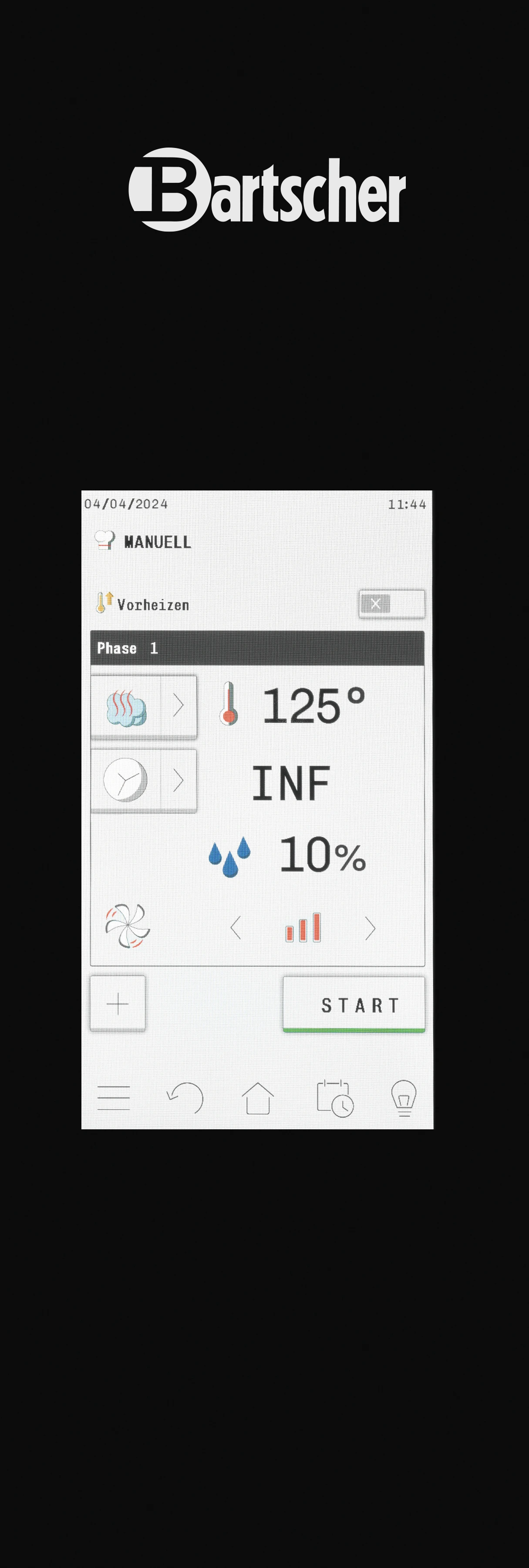 LED-Anzeige | Beschwadung, Delta-T-Garen, Garphasen, Kerntemperatur, Lüftergeschwindigkeit, Programm, Temperatur, Zeit