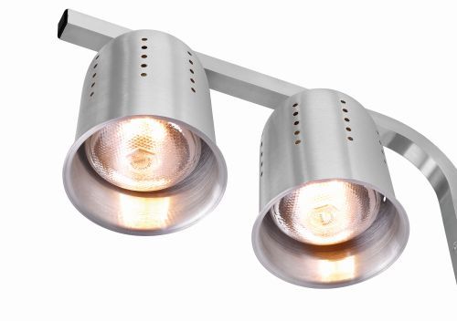 Ob an Buffets, bei Caterings oder in Kantinen – Die beiden Wärmelampen mit belüfteten Aluminiumreflektoren sorgen für eine zielgerichtete Wärmeabgabe. So können Speisen in Behältern mit einer Größe von bis zu 1/1 GN warmgehalten werden.