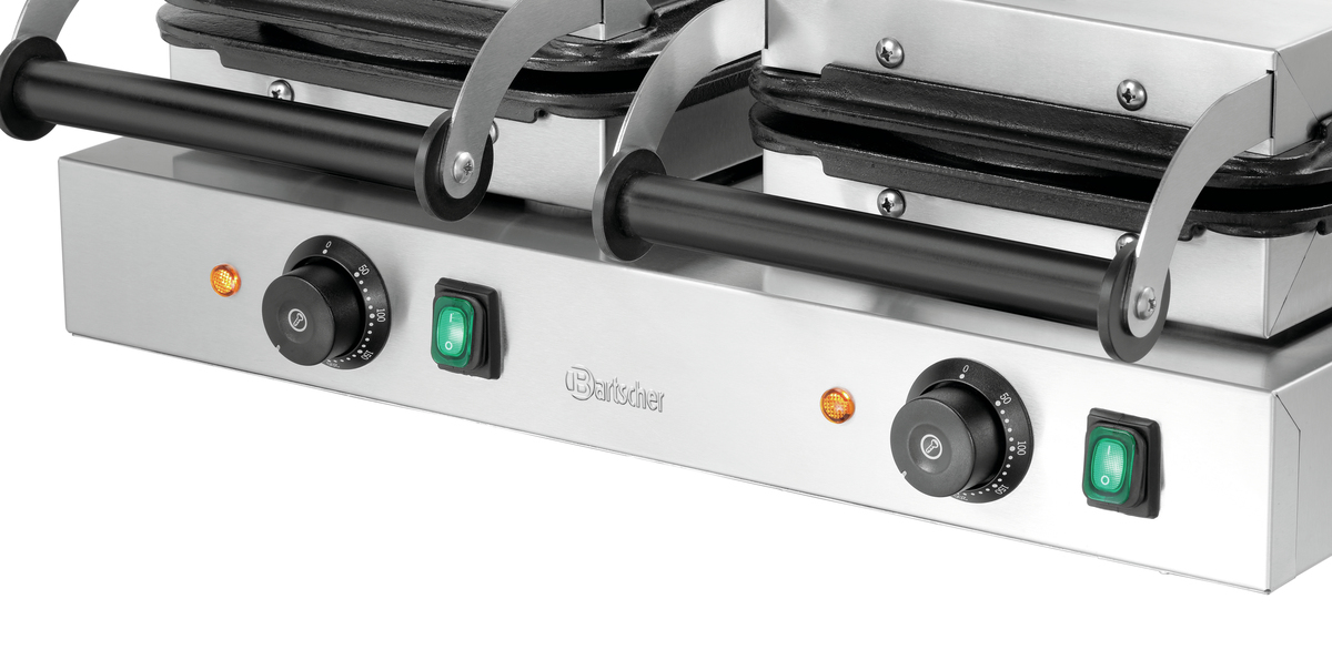 Das Waffeleisen mit 2 Backeinheiten in Herzform überzeugt durch die hohe Wärmeleitfähigkeit der gusseisernen Backplatten, die robuste Ausführung und die Leistungsstärke. Die beiden separaten Ein-/Ausschalter ermöglichen zudem eine unkomplizierte sowie bedarfsgerechte Nutzung.
