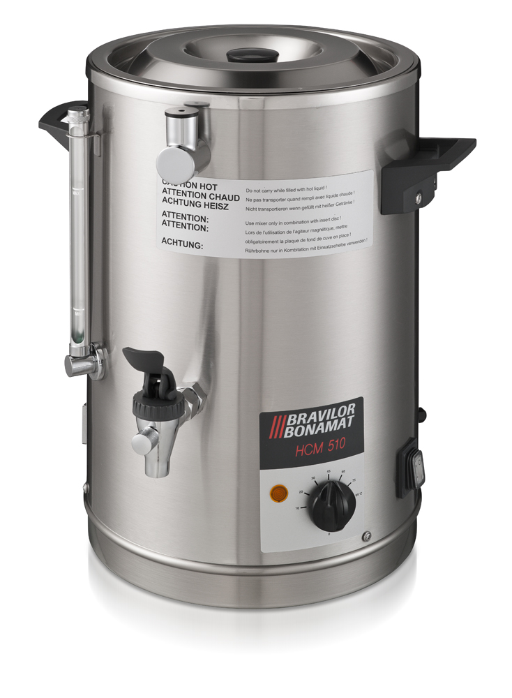 HCM 510: Geeignet für das Erwärmen von größeren Mengen an Schokoladenmilch bzw. Trinkschokolade (10 Liter). Permanente Umwälzung der Trinkschokolade mittels einer magnetischen Rührbohne. Die Milch wird durch das Bain-Marie System/Wasserbad erwärmt, ohne anzubrennen oder haften zu bleiben.