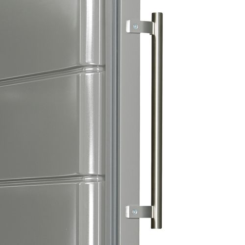außen: Stahlblech, pulverlackbeschichtet, Farbton: grau, Chromstahltür