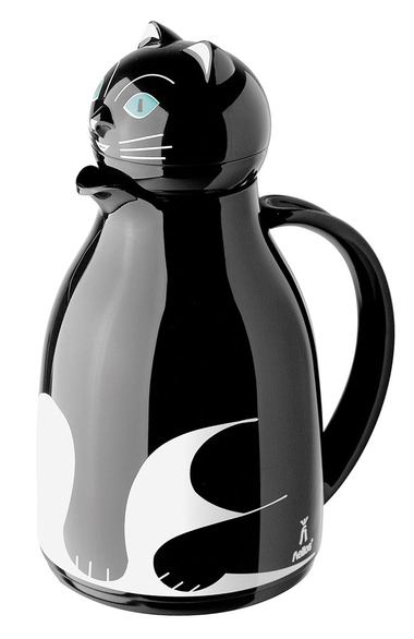 Eine humorvolle Liebhaberkanne im Katzen-Design. Umhüllung aus Hochglanz-Hartplastik.