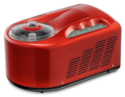 die schwungvollen Formen erinnern an das Retro-Design der 1950er-Jahre, so dass diese italienische Eismaschine auch im Thekenbereich dekorativ platziert werden kann