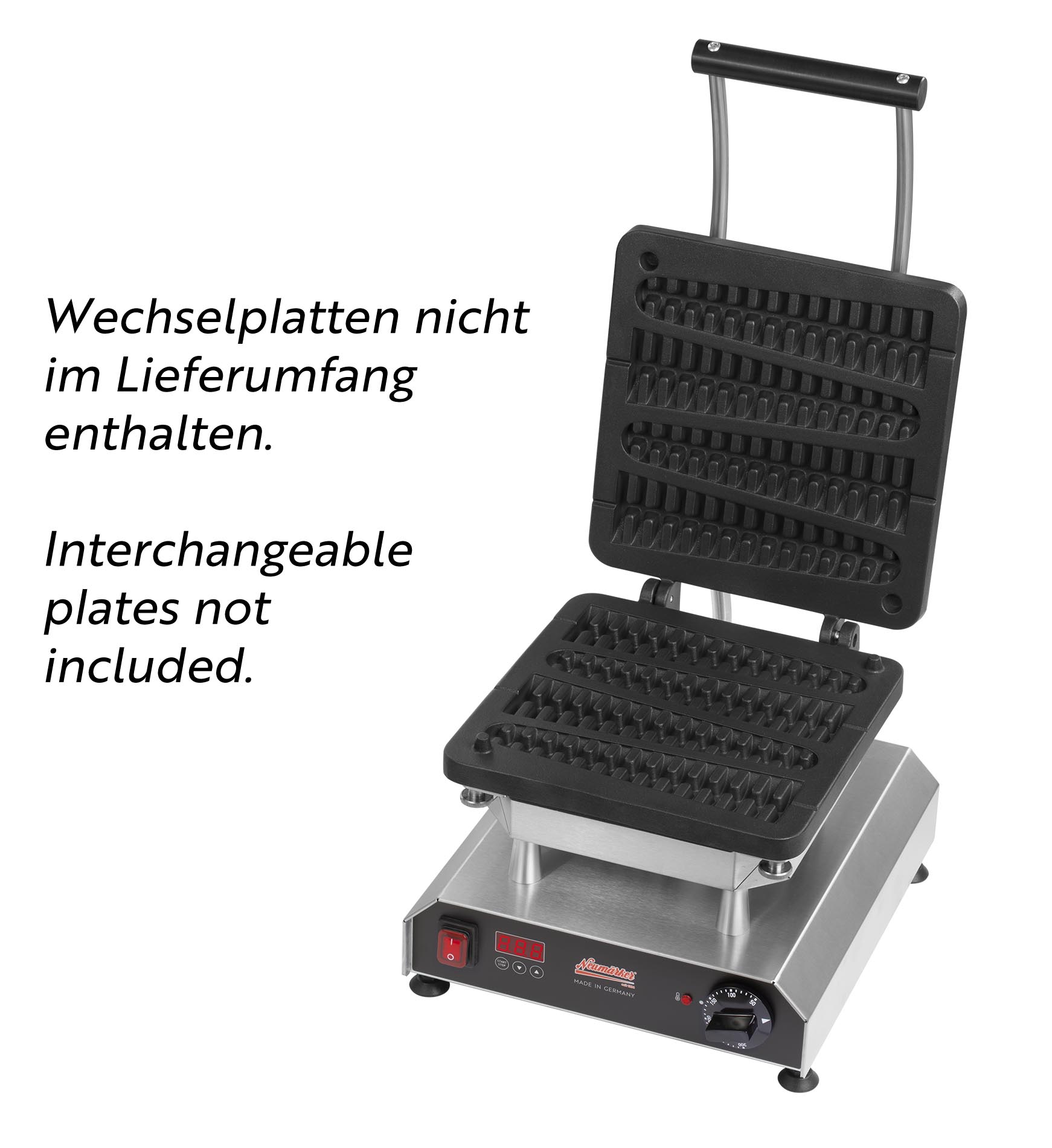Der Thermocook® ist ein leistungsstarkes Multifunktionsgerät für die Gastronomie mit wechselbaren Platten, das höchste Flexibilität und Qualität in einer professionellen Küche garantiert. Mit über 25 verschiedenen Einsätzen – darunter Platten für Waffeln, Pizza, Crêpes, Paninis und vieles mehr – passt sich das Gerät mühelos jedem Einsatzbereich an. (Wechselplatten sind separat erhältlich.)