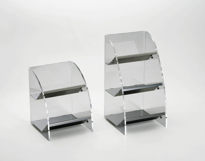 Stöckel Kombi Box Tresenaufsteller mit 2 Fächern aus Plexi/Edelstahl 180 x 195 mm