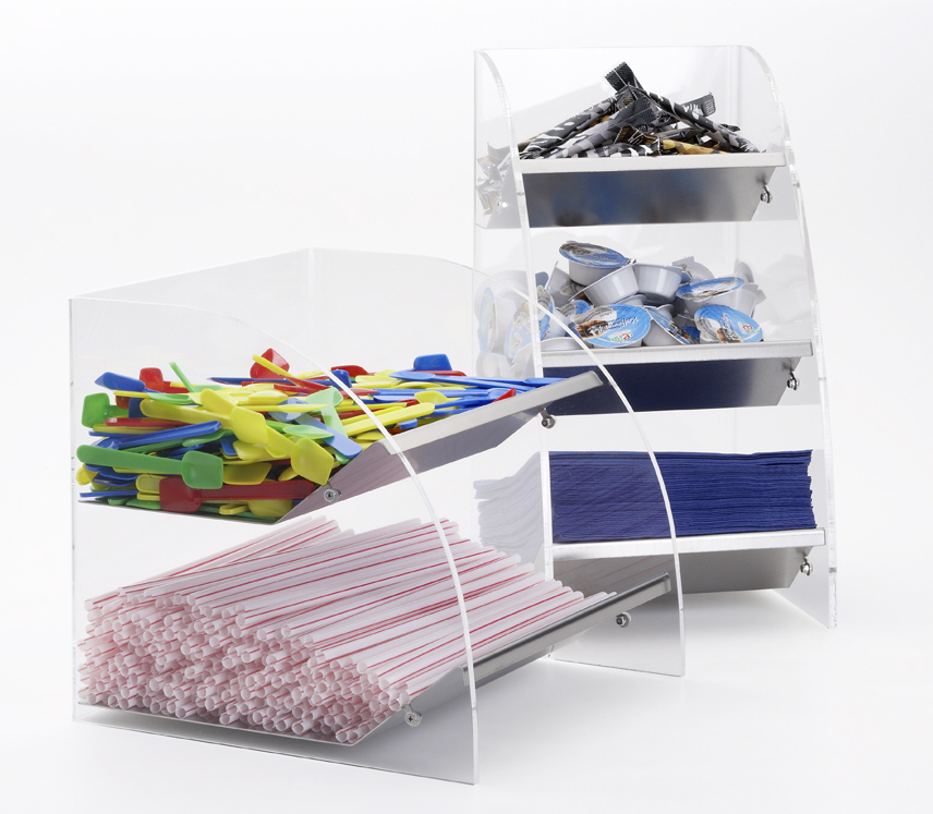 Stöckel Kombi Box Tresenaufsteller mit 2 Fächern aus Plexi/Edelstahl 250 x 250 mm