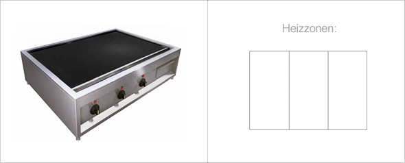 Einbaugerät mit 3 nebeneinander angeordneten Heizzonen, je 3,0 kW Leistung